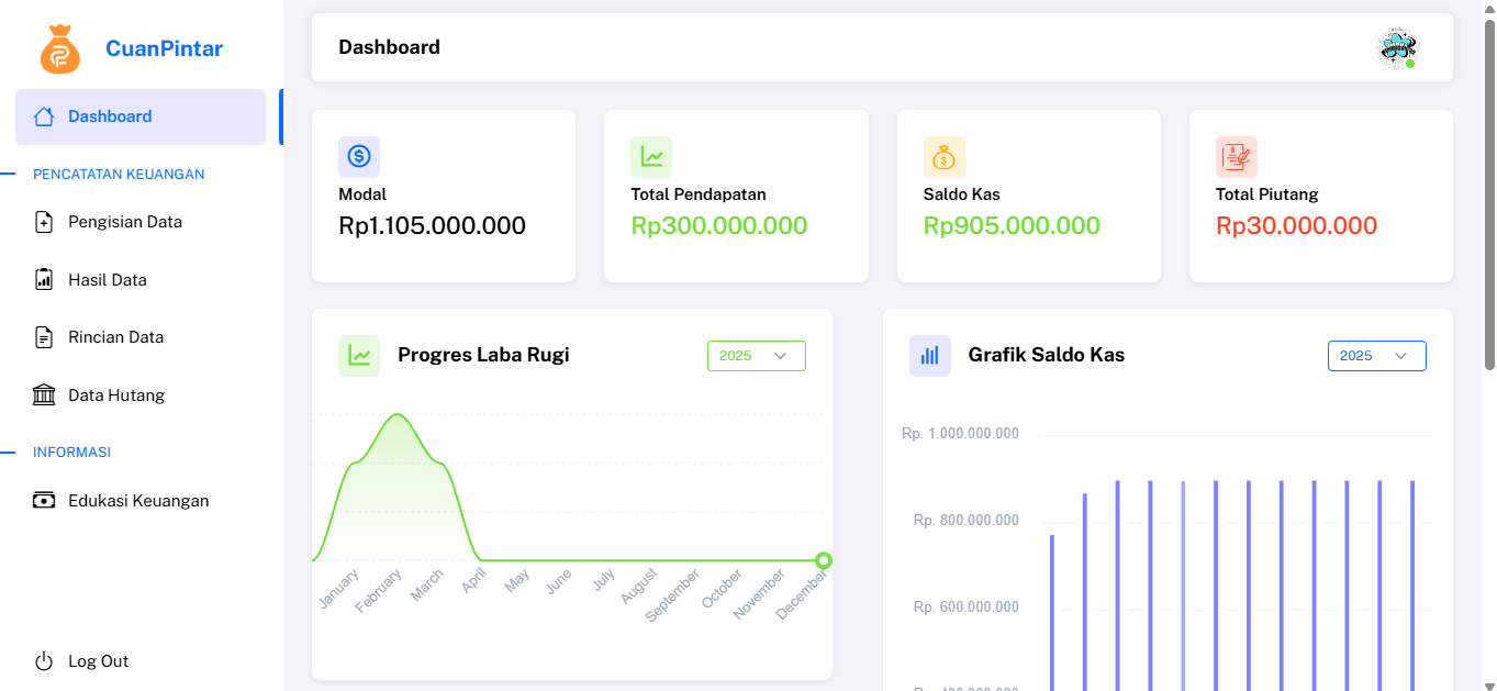 CuanPintar adalah sebuah platform digital berbasis website yang dirancang untuk membantu pelaku usaha, karyawan, hingga pelajar dalam mencatat keuangan dengan sistem akuntansi yang sederhana namun profesional .