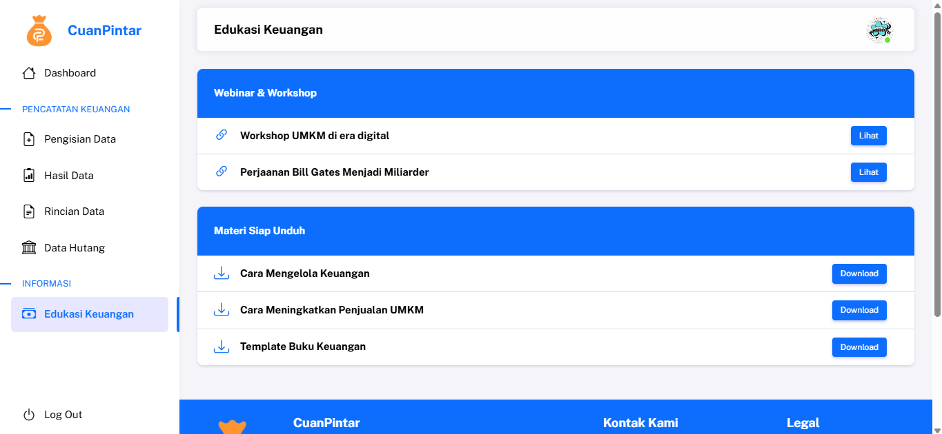 Edukasi Keuangan adalah fitur tambahan yang mendukung peningkatan literasi keuangan pelaku UMKM.